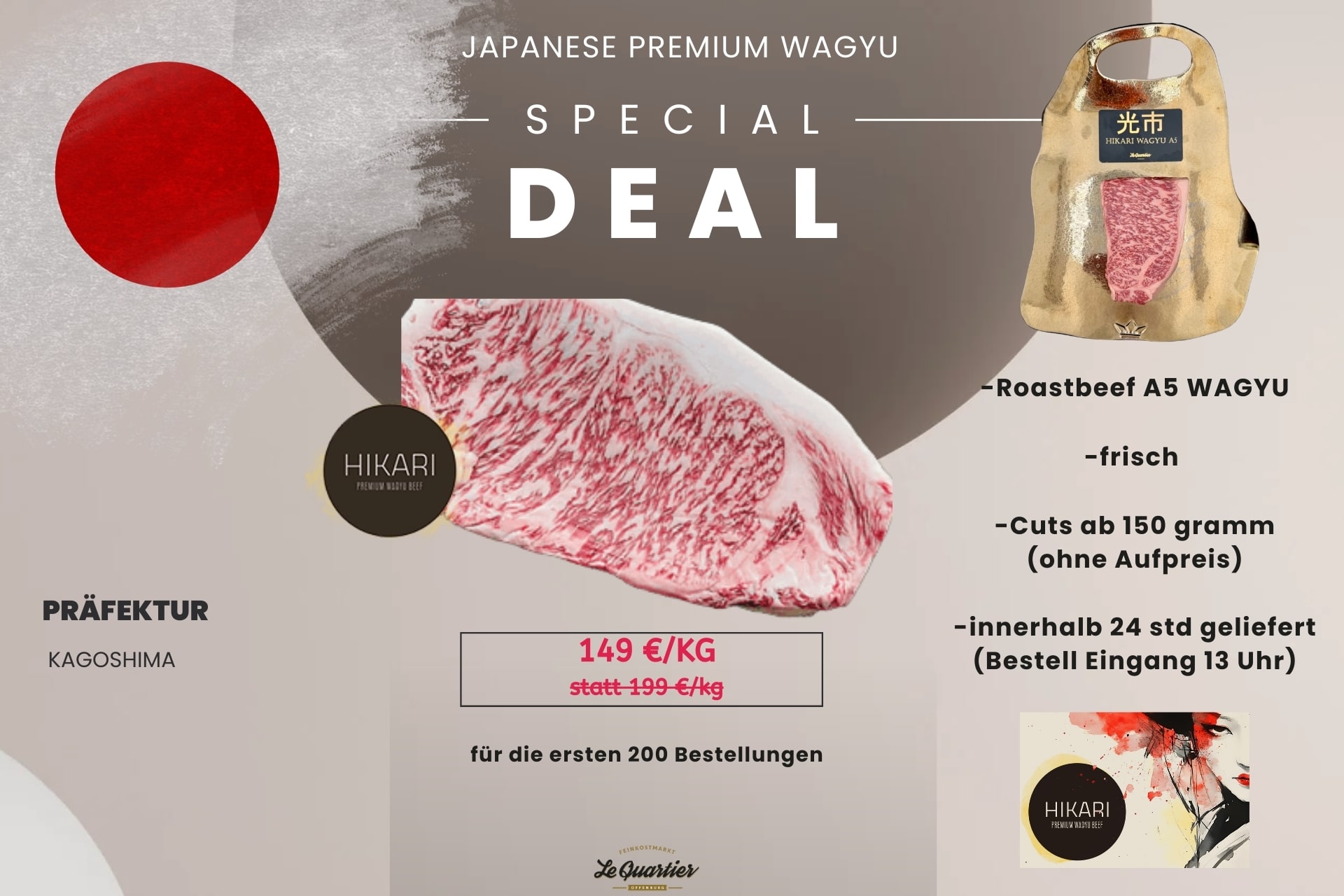 Absolut top! Ich habe japanisches Wagyu bestellt – qualitativ exzellent und extrem hochwertig. Sehr schneller, netter und professioneller Kontakt. Der Versand lief perfekt, das Paket kam bereits am nächsten Tag an. Klare Empfehlung – ein echter Geheimtipp … Mehr für hochwertiges Fleisch.