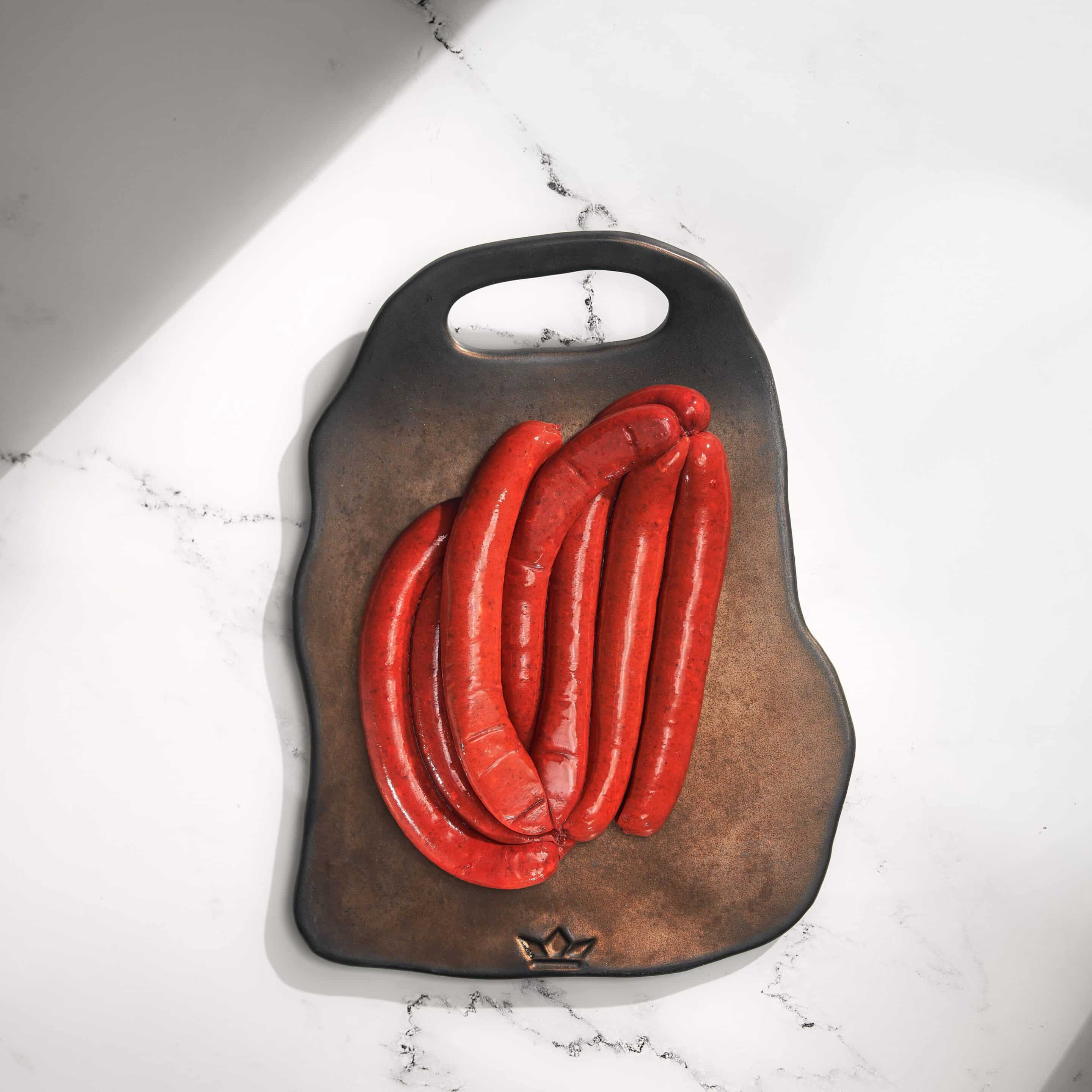 Ein maghrebinischer Klassiker, der schon lange eine zweite Heimat in der französischen Küche gefunden hat. Eine würzige Paprika-Note abgerundet mit einem Hauch Knoblauch. Wir stellen diese Wurst, traditionell mit größter Sorgfalt und Leidenschaft her in unserer „Manufacture de Merguez“