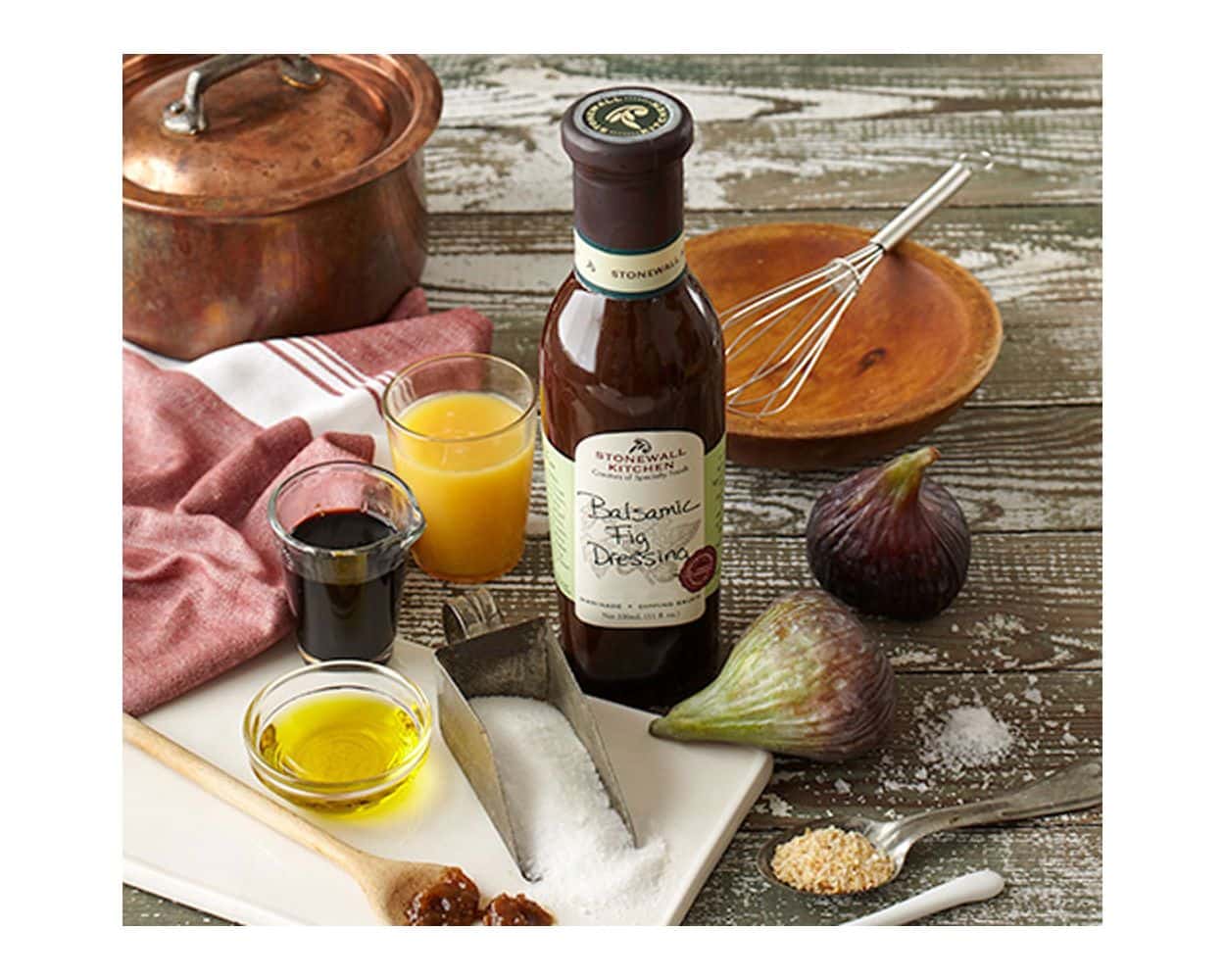 | Zutaten | Balsamico Essig (enthält Sulfit, Weinessig, Traubenmost, Farbstoff: Zuckerkulör), Reiner Rohrzucker, Wasser, Rapsöl, Feigenpüree (8%) (Feigenpüree, Feigenkonzentrat), Feigenkonzentrat (<1%) (Lösliche Feigenstückchen, Wasser), Orangensaftkonzentrat, Speisesalz, getrocknete Zwiebeln, Gewürze, Pures Vanilleextrakt, Verdickungsmittel: Xanthan |