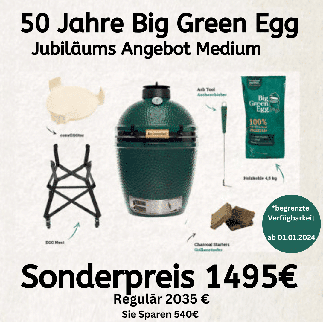 entgehen lassen sollten. Sichern Sie sich Ihr Medium Big Green Egg Jubiläumspaket und heben Sie Ihre Grillfeste auf ein Niveau, das nur durch 50 Jahre Erfahrung