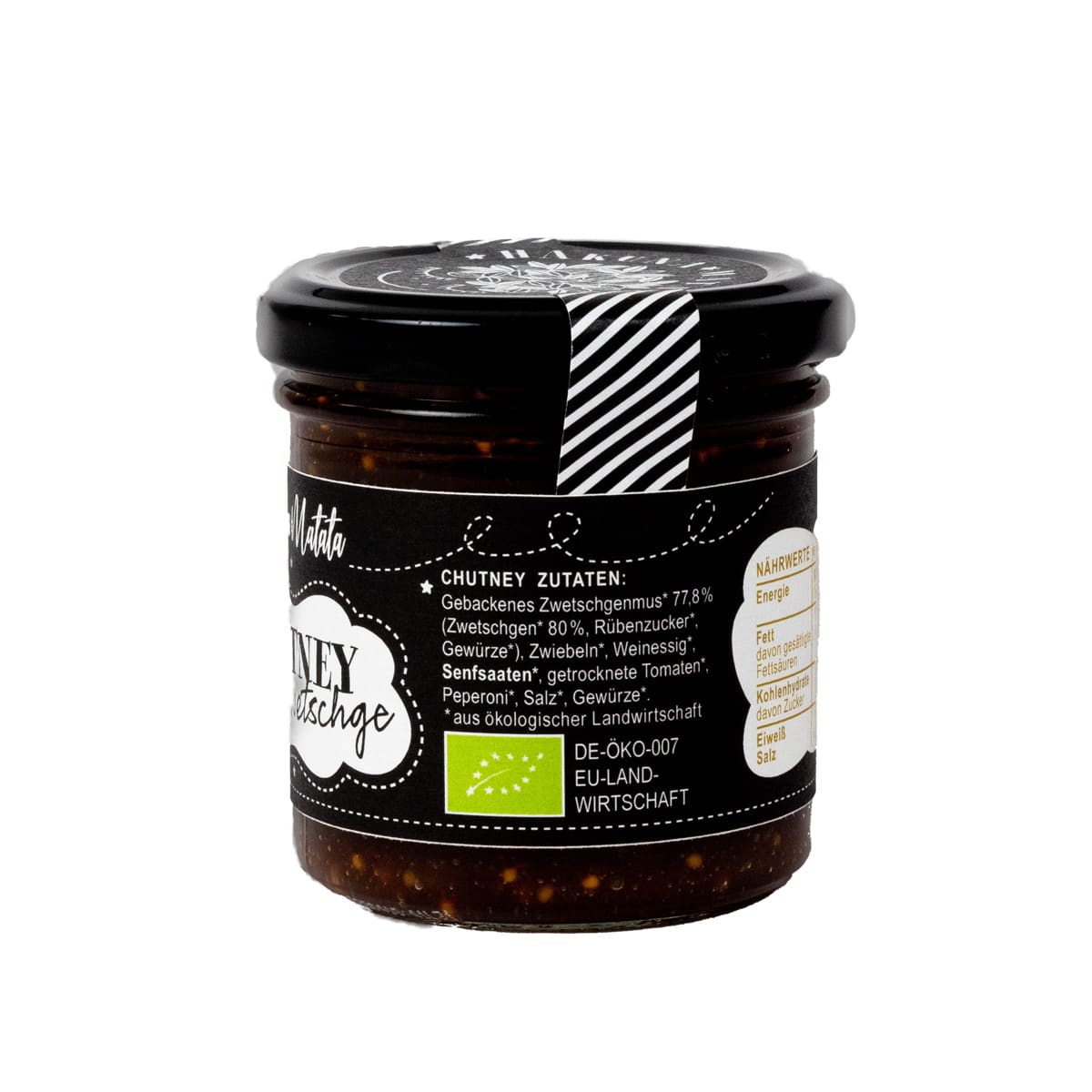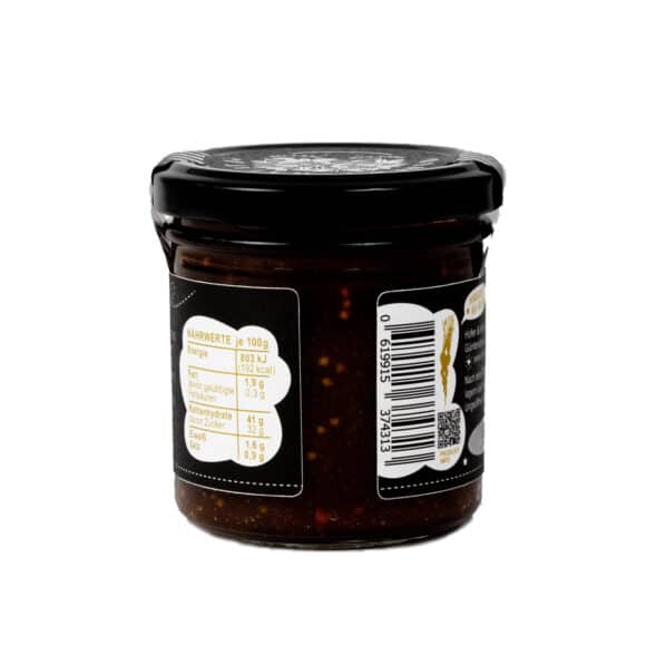 Zutaten: Gebackenes Zwetschgenmus* 78% (Zwetschgen* 80%, Rübenzucker*, Gewürze*), Zwiebeln*, Weinessig*, Senfsaaten*, getrocknete Tomaten*, Peperoni*, Salz, Gewürze*.