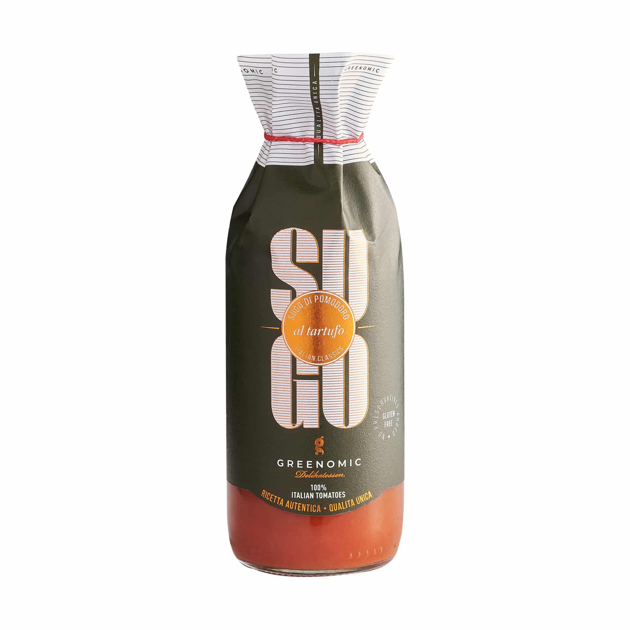| Produkttyp & Herkunft | Tomatensoße mit Trüffel / Italien (für Deutschland über Greenomic Delikatessen) |