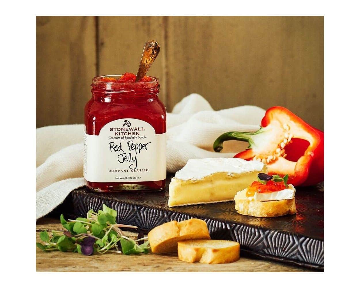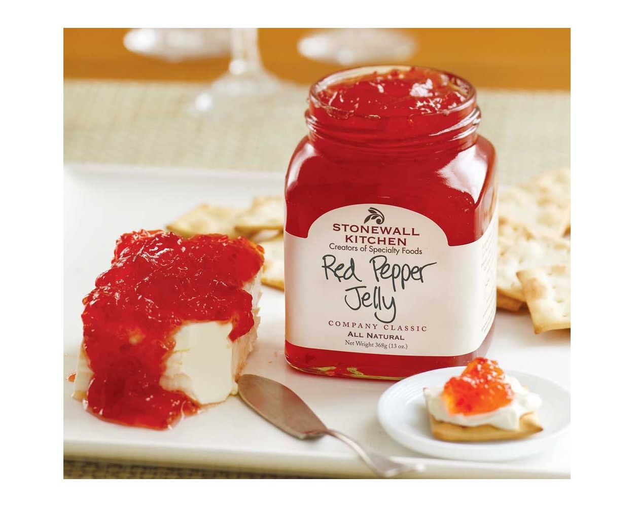 Gourmet-Tipp: Geben Sie einen Löffel von dem Red Pepper Jelly auf einen Cracker mit Frischkäse und genießen Sie diesen köstlichen Happen als Snack zwischendurch. American Heritage importiert alle Produkte von Stonewall Kitchen direkt aus den USA.