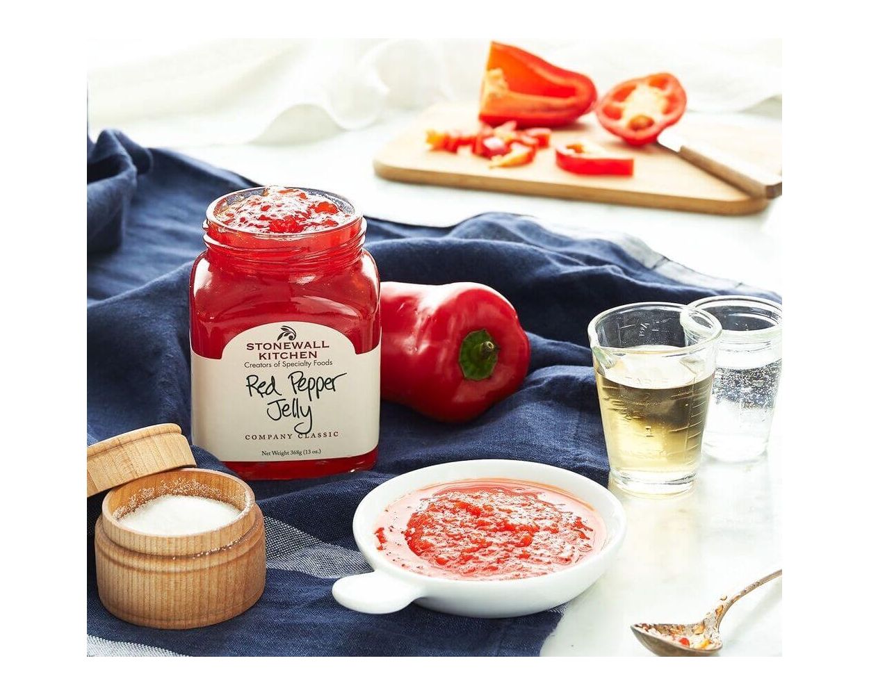 Das Red Pepper Jelly ist ein weiterer köstlicher Geniestreiche aus der Stonewall Kitchen Küche. Eine fruchtige Mischung aus roter Paprika, der Süße von reinem Rohrzucker und der feinen Würze von frischem Cayennepfeffer.